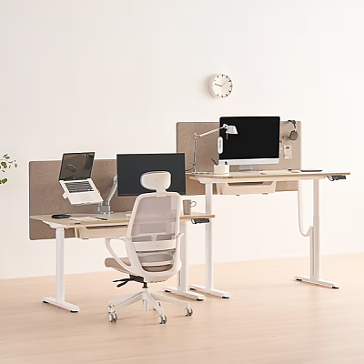 우드톤의 오피스원 책상과 이동서랍, 낮은 스크린으로따듯한 느낌의 회계사무…